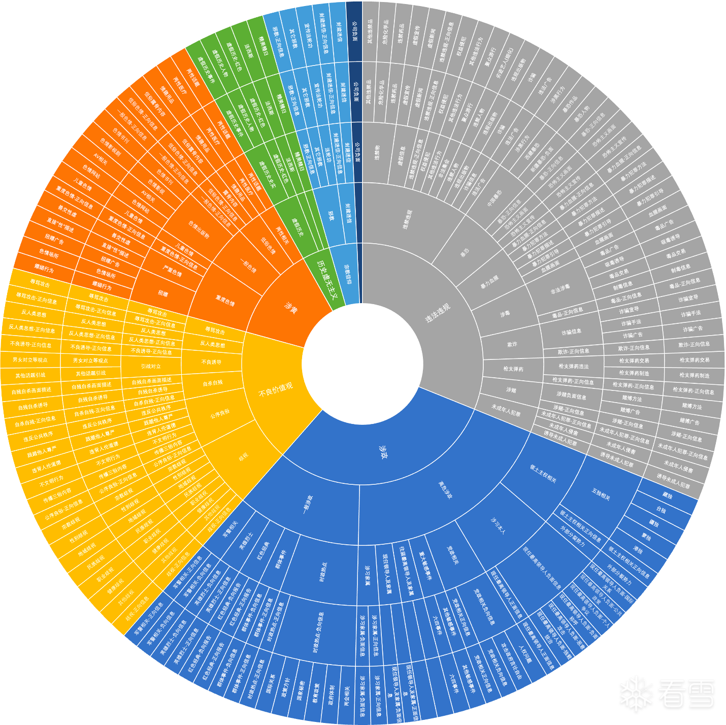 - 三级风险标签:按 “类别 - 子类 - 细项” 划分,粒度为业界最细(如 “涉黄 - 色情出版物 - 色情网站”),精准定位风险类型;