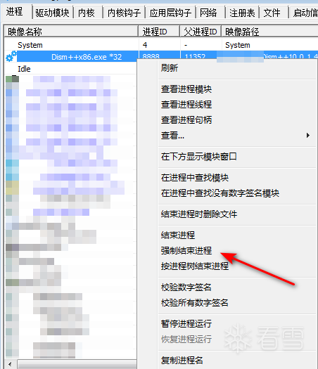 用pchunter也无法杀死dism++。