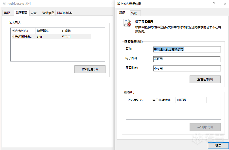 rwdriver.sys使用泄露的“中兴通讯股份有限公司”过期签名