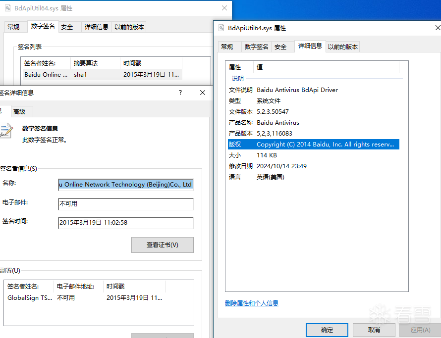 BdApiUtil64.sys | 百度杀毒使用的sys驱动 |