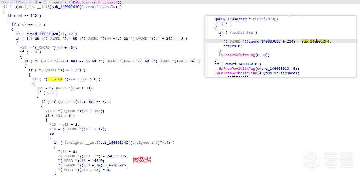 获取到nsiproxy.sys驱动对象后,替换其结构体中的回调函数指针,替换为自定义Hook函数:
