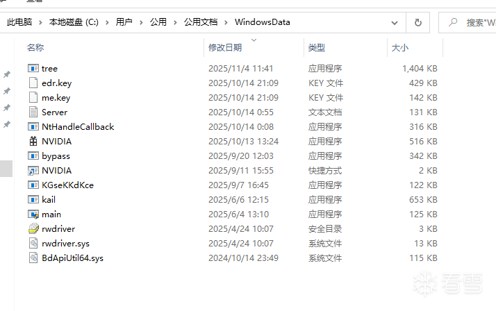 edr.key | 压缩包,内含BdApiUtil64.sys, bypass.exe, KGseKKdKce.exe, main.exe, NVIDIA.lnk, rwdriver.cat, rwdriver.sys |
