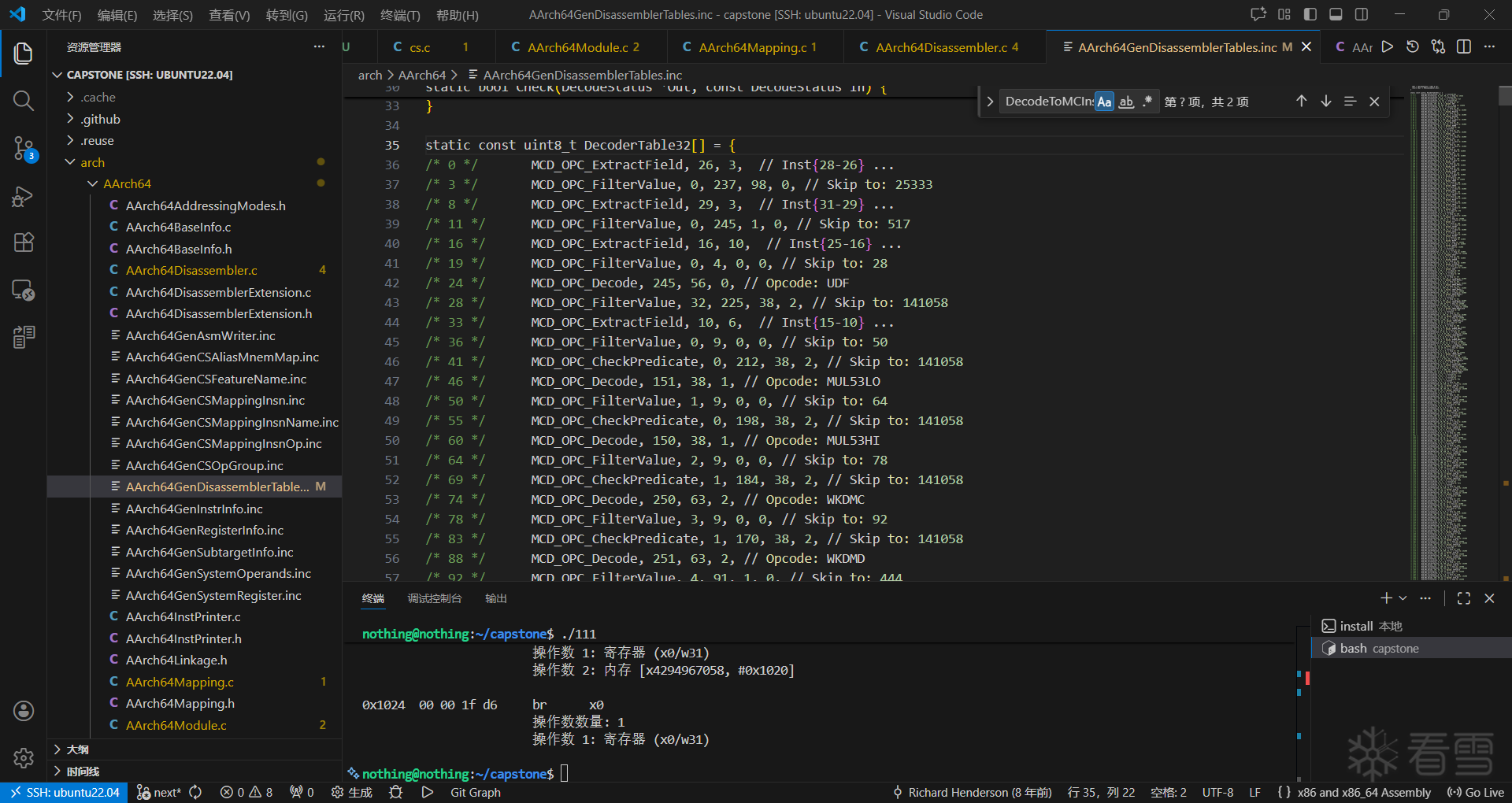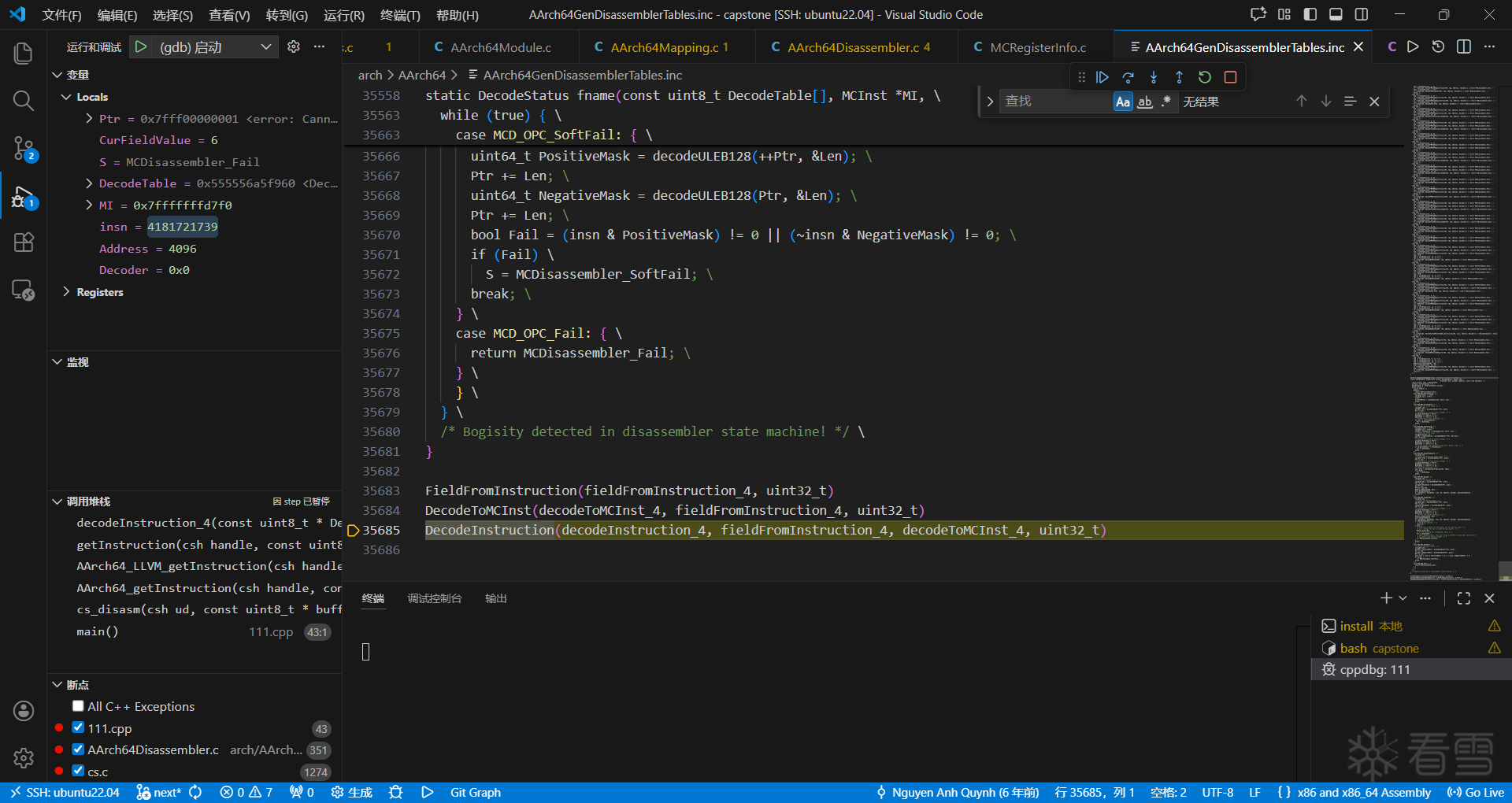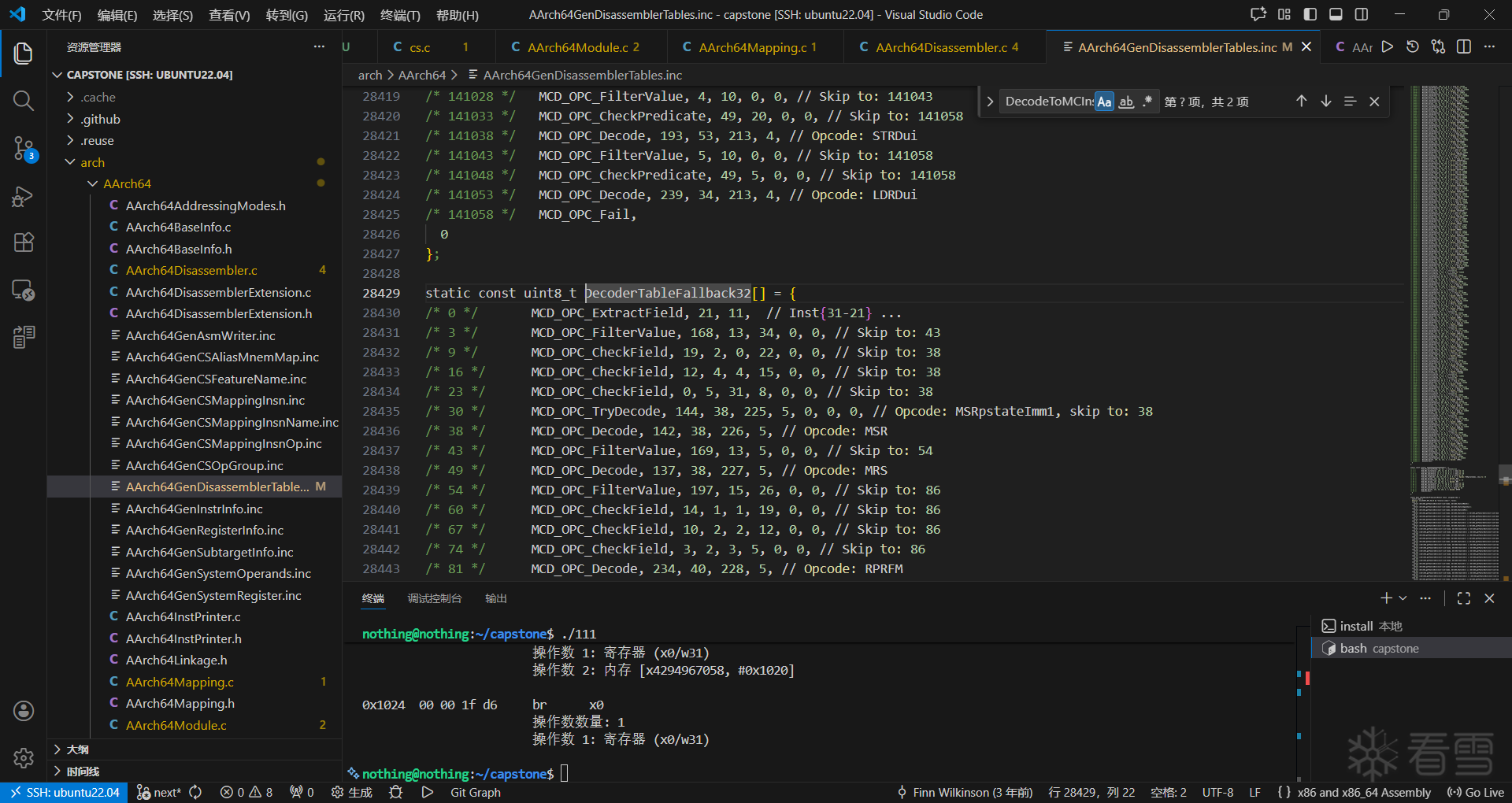 跟入 getInstruction, 来到了 arch/AArch64/AArch64Disassembler.c 中: