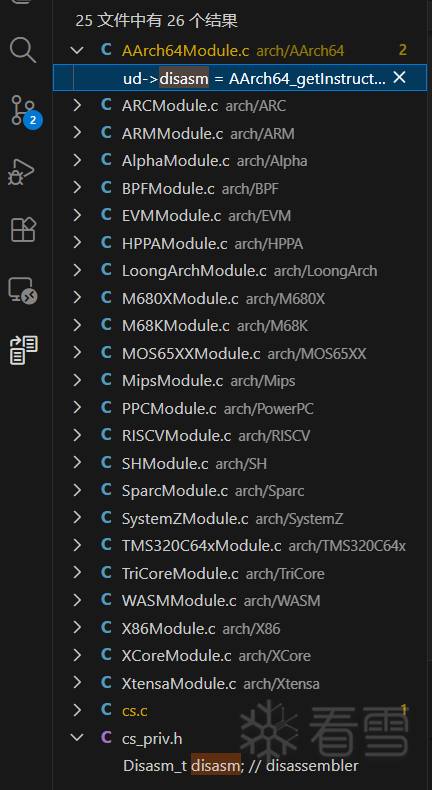 让我们从这个代码中的 cs_disasm 开始看, 前面的一些初始化的代码跳过: