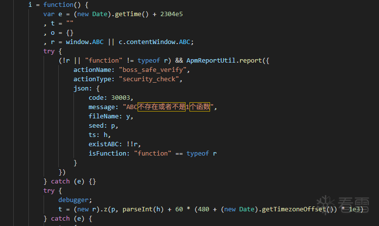 先上链接:aHR0cHM6Ly93d3cuemhpcGluLmNvbS93dWhhbi8/a2E9Y2l0eS1zaXRlcy0xMDEyMDAxMDA=,这个站chrome是抓不到包的,需要用fiddler抓包,先开启fiddler,然后打开网页直接找security-check.html这里是调用ABC生成cookie __zp_stoken__的地方,先用fidder替换掉这个文件,然后在调用处加上debugger。