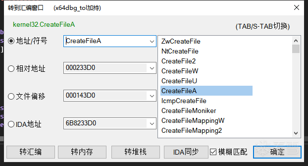2025年11月26日更新说明: 1.CTRL+G对话框加入历史记录功能,按上/下键调出最近的跳转记录,记录保存在PE文件对应的[x32|x64]/db文件中,最大记录条数目前暂定30条,按最近使用排序,目前VA/RVA/File offset/In IDA共用一个记录列表。 2.添加ALT+1(ALT+SHIFT+1)和Alt+2(ALT+SHIFT+2),功能同CTRL+1/2 3.修复部分symbol跳转失败问题