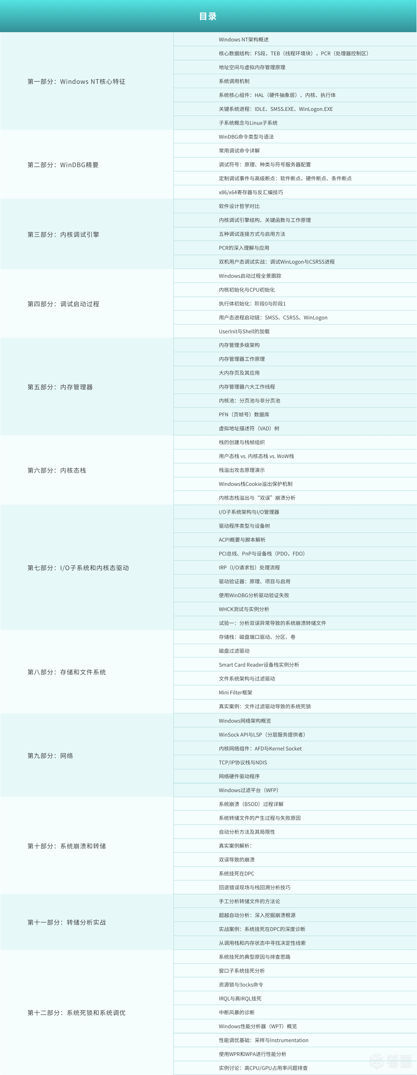 - 深入内核调试引擎,掌握双机调试实战,连用户态进程(如WinLogon、CSRSS)也不放过。