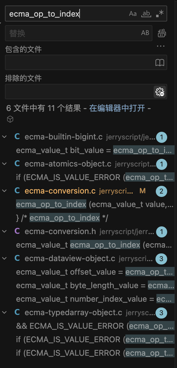 接着就是更上层的调用查找,对于ecma_op_to_length来说,更多的是倾向于被字符串和regexp的处理,如果存在漏洞,那么品相也不一定很好,所以我这里继续看了ecma_op_to_index的上层调用