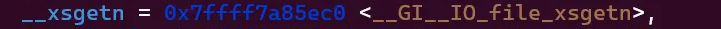 也就是说fread最后会调用vtable表中的__xsgetn函数指针,最后调用了__GI__IO_file_xsgetn。这个以 __GI_为前缀的符号通常是 glibc 内部用于绑定到实际实现函数的别名,其真正的函数定义就是 _IO_file_xsgetn