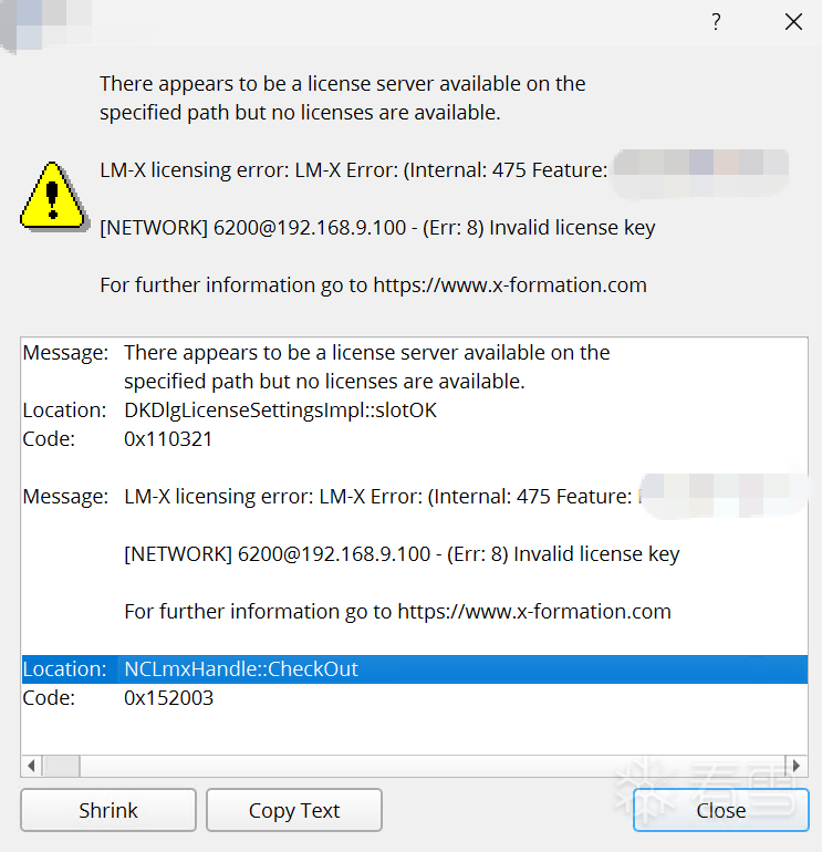 程序运行报错: [root@node bin]# ./lmx-serv Starting LM-X License Server with default options. To see help use option -h. LM-X PERPETUAL VERSION: Invalid license key Please contact X-Formation at: 18aK9s2c8@1M7q4)9K6b7g2)9J5c8W2)9J5c8Y4N6%4N6#2)9J5k6i4S2Q4x3X3c8X3L8%4u0E0j5i4c8A6L8$3&6Q4x3X3g2U0L8$3#2Q4x3U0k6F1j5Y4y4H3i4K6y4n7L8%4u0Q4x3U0k6F1j5Y4y4H3i4K6y4n7M7$3q4D9k6i4y4Q4y4o6m8^5i4K6u0V1k6X3!0J5L8h3q4@1K9h3!0F1i4K6u0W2j5$3!0E0