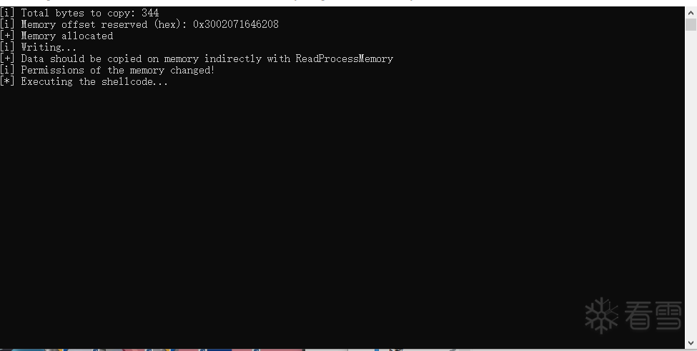 verboseHandler(verbose, "Data should be copied on memory indirectly with ReadProcessMemory", "success");