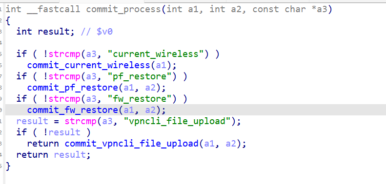 commit_fw_restore(a1, a2) 防火墙恢复、 commit_vpncli_file_upload(a1, a2) VPN客户端文件上传。