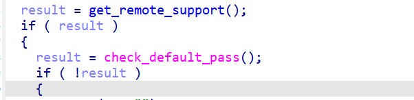 首先看这一段,就是调用get_remote_support()函数,把结果放进去,然后检查默认密码。