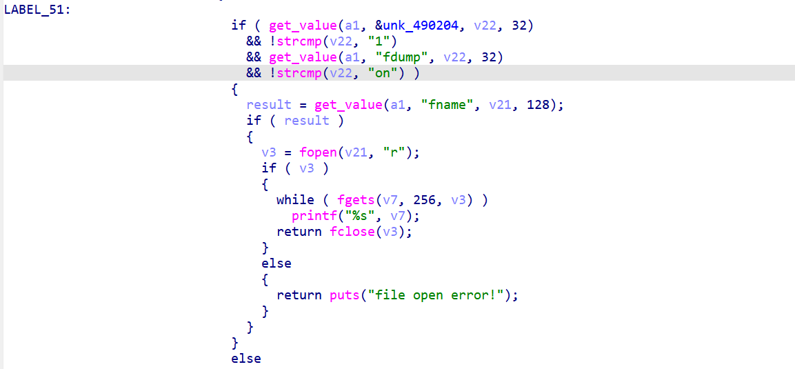 看着一段,如果设置了fdump=on则程序会读取用户输入的rname参数作为文件名。