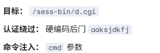 第一步,就是认证机制绕过。这个漏洞是故意让认证失败来实现的。/sess-bin/d.cgi,认证条件是