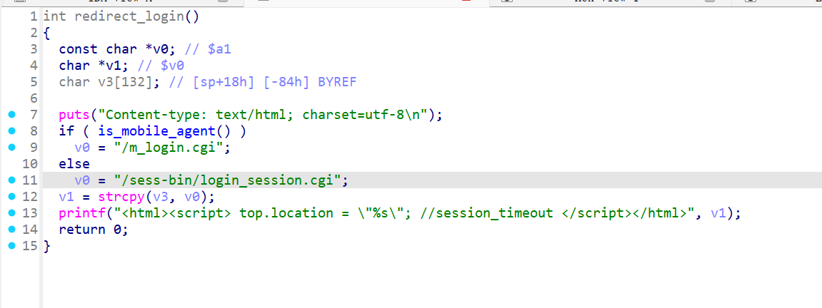 检查用户是否已登录的核心逻辑,说先获取COOKIE头部,通过 extract_session_id_from_cookie(v5, v8) 从COOKIE中解析出Session ID, check_session("httpcon", v8, v4) 比对服务器的Session列表中检查ID是否有效。