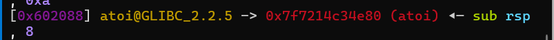 接着我们就可以用show功能打印prt[1]也就是atoi@got的内容