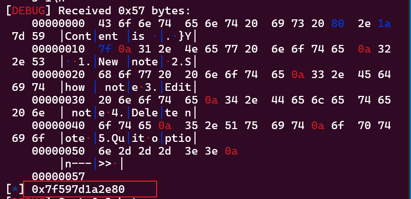 再接着编辑s[0],也就是修改free@got,我们改成put@plt,这样当free(1)时就变成了puts(puts@got),打印puts@got的内容,泄露libc基址