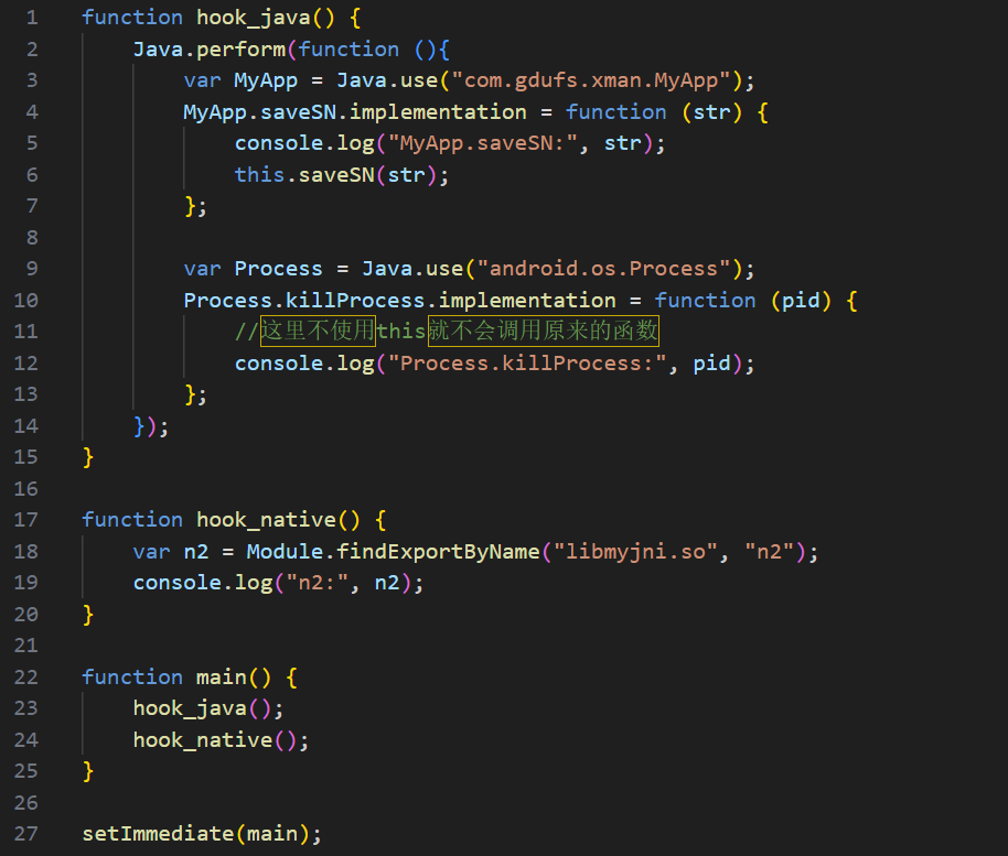 setImmediate(main);frida -U -f com.gdufs.xman -l ./1.js