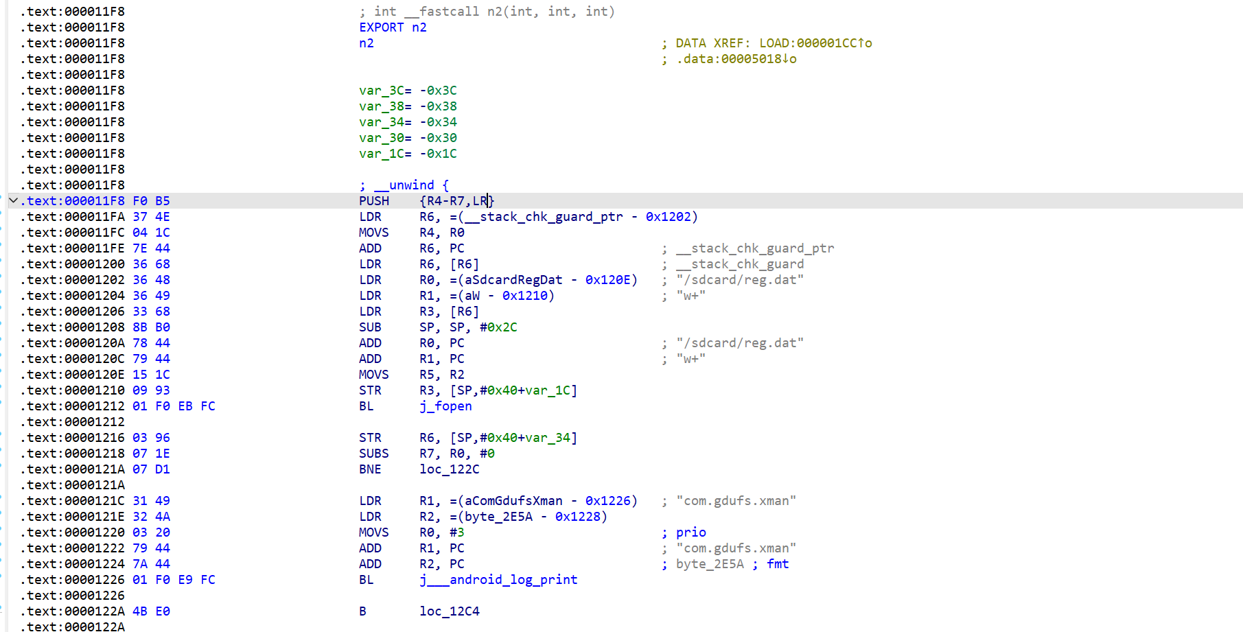 他是0x11f8,那是因为这个函数是thumb函数,便宜的地址要加上模块的地址