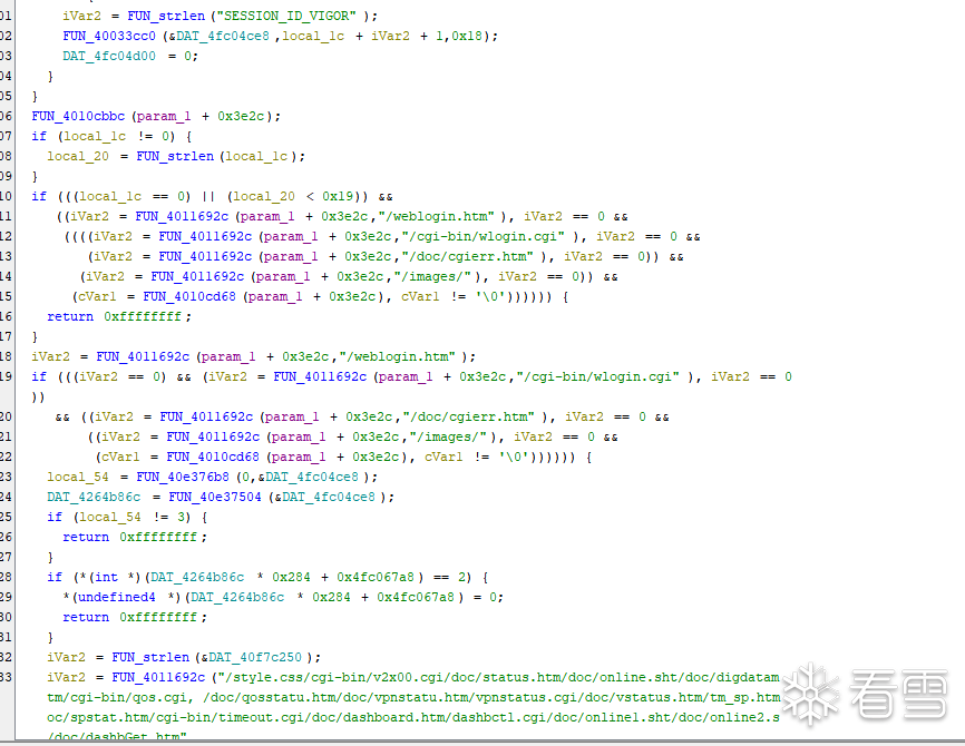 还有一种方法就是找他相邻版本有符号版本的固件,优点就是架构清晰,因为路由器他的版本虽然变化,但是功能函数改动不会特别大,不太可能一个版本一个处理方法,其次就是新版会出现这个漏洞,旧版应该也会出现,但是风险就是我们无法确定他是否修改了什么,所以不是特别稳定的方法。但是可以找这两个版本同时对比一下,可以查看一下整体框架改动这样的方法。