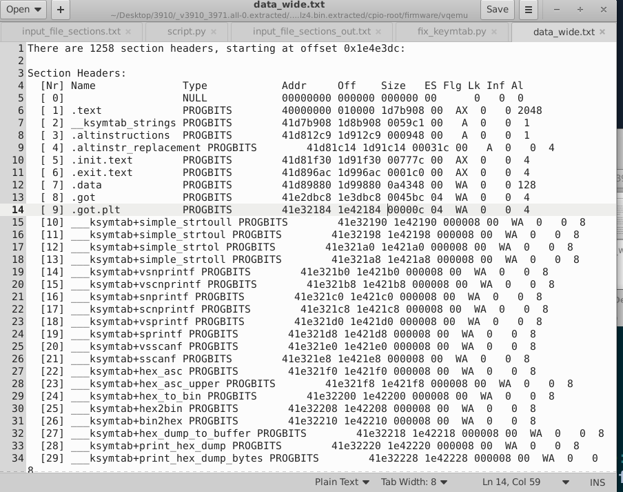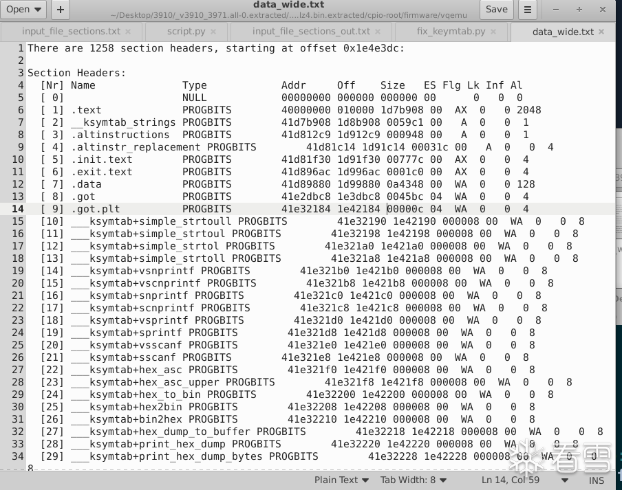 # 例子: [10] ___ksymtab+sscanf PROGBITS 427009b0 27109b0 ...