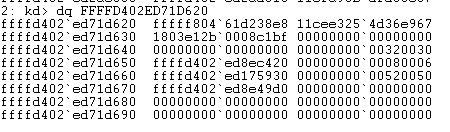 为了确认查询语句访问的究竟是哪一个内存地址,我们可以逐个修改,然后不断重试查询语句,看修改哪一个地址后,查询的结果也随之改变,那么就是查询语句访问的内存地址。这了为了各位操作方便提前透露该内存地址是MiVaNonPagedPool区间内的内存,如何获取该区间论坛有对应的文章讲解,如果无法实现的读者较多,我后续上传。