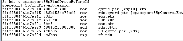 我们重点关心这里的v13的来源,这里+10其实就是+80也就是+0x50,比较基础就不废话了。你可以对你认为疑似v13来源的位置直接bp下断,看是否执行到对应的位置,这里就直接说结果了,v13来源于SpFindDriveByTempId这个函数的返回值: