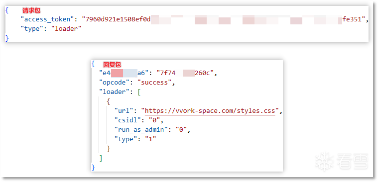运行时该病毒会发送数据包请求 loader 配置,其配置中的 url 为将要静默执行的程序或脚本的下载链接。