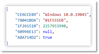 POST 请求时会发送以下内容的经过加密和 Base64 编码后的数据,其中 CE6CCE89 字段值为 Windows 版本、78041BDA 字段值为系统盘序列号哈希值、1F261510 字段值为固定编码,猜测为病毒版本相关、A8A714D2 字段值为是否为管理员权限。