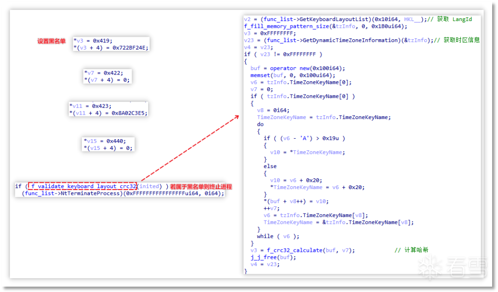 该阶段会先检查语言ID与时区,若语言ID或时区与下表吻合则终止当前进程。