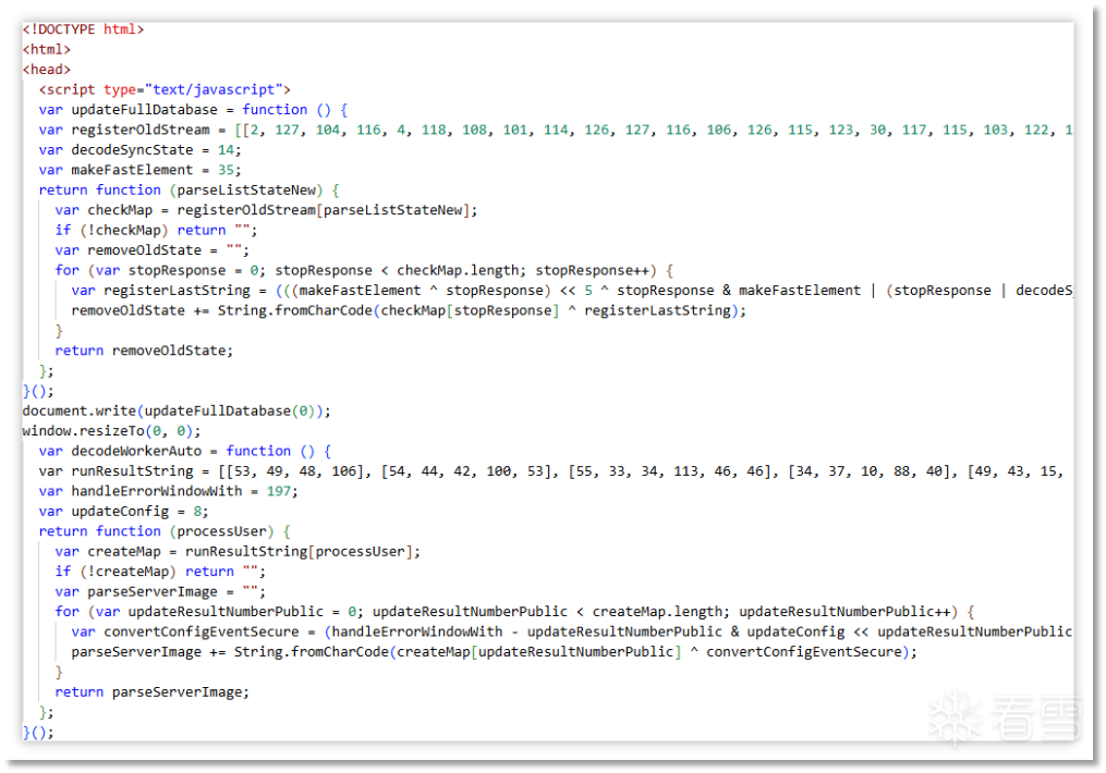 下载的是 html,其中嵌入了 script 脚本。其中 updateFullDatabase 和 decodeWorkerAuto 函数为字符串提取函数。