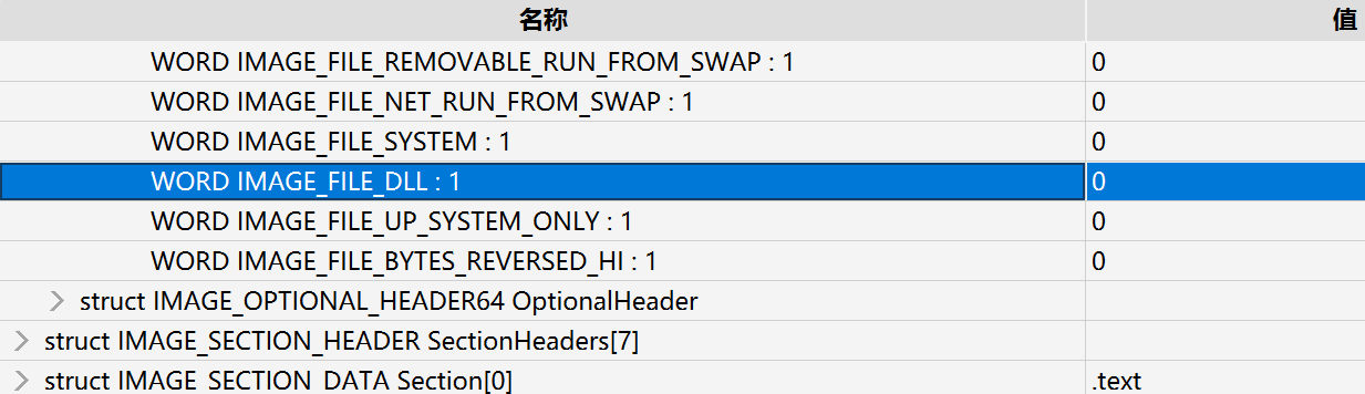 然后 exe 文件变成 dll 文件。calc.exe原本是 exe 文件,FileHeader.Characteristics 的字段IMAGE_FILE_DLL 为 0。