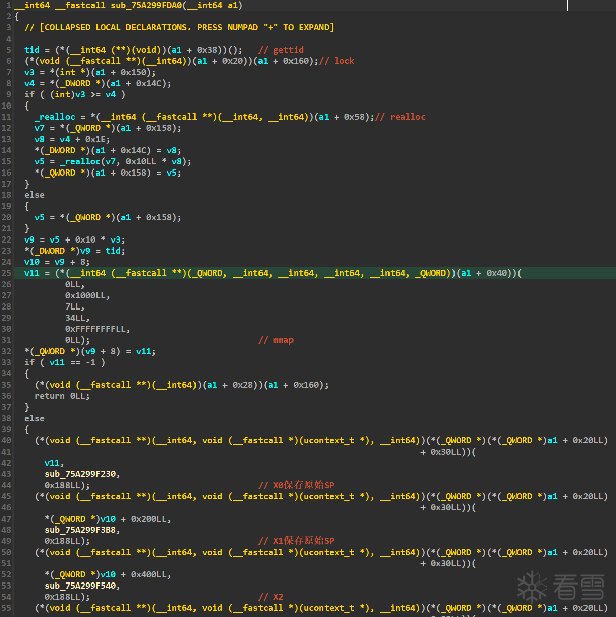 sub_75A299FDA0会mmap申请一块内存,写入原始的shellcode包,详见下文