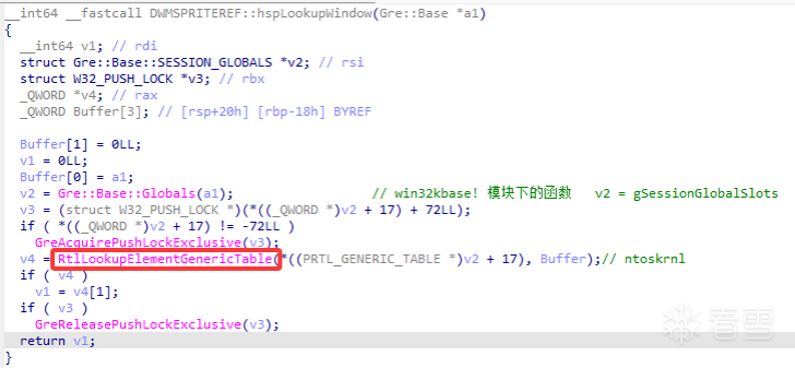 进入DWMSPRITEREF::DWMSPRITEREF函数后,再进入DWMSPRITEREF::hspLookupWindow函数: