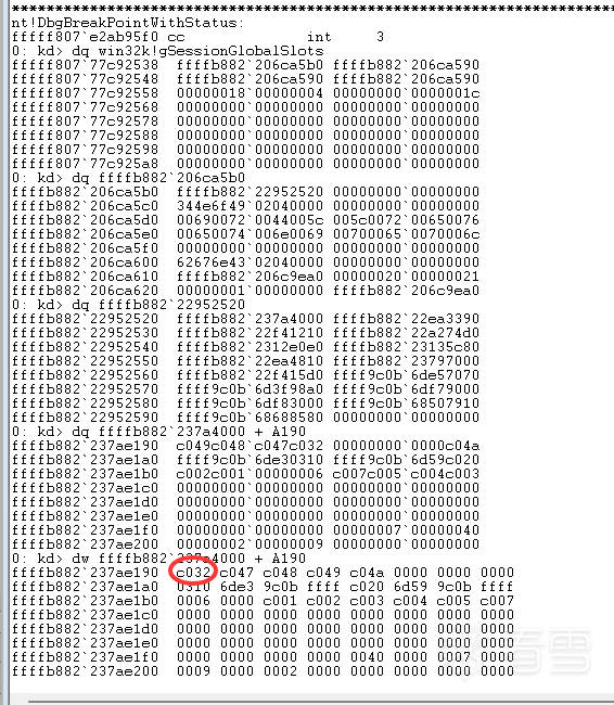 W32GetUserSessionState函数可以通过win32k.sys函数查找到,当然用windbg也可以看到函数所在的模块,就是将全局变量gSessionGlobalSlots解引用两次即可。