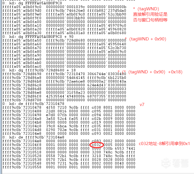 我们在windbg中查看我们的hWnd在二叉树中的哪一个位置: