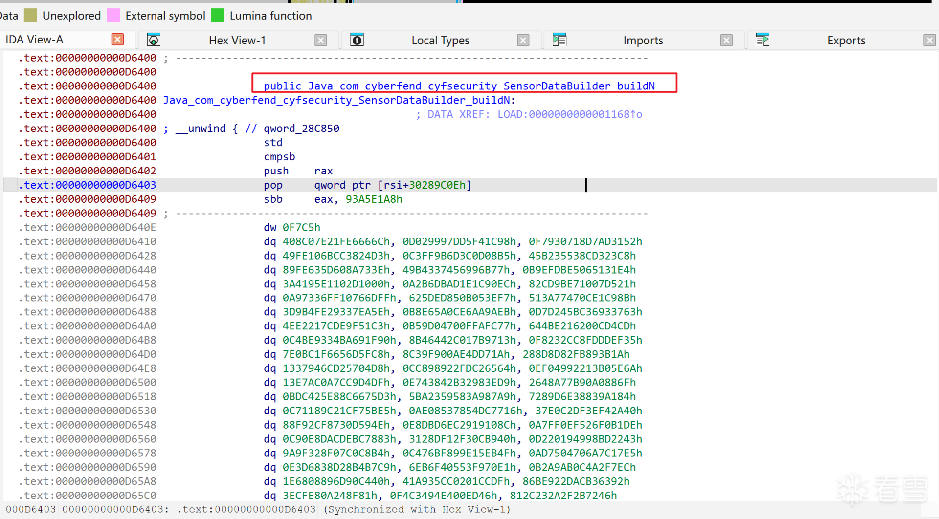 求助下大佬们libakamaibmp.so文件中的Java_com_cyberfend_cyfsecurity_SensorDataBuilder_buildN函数怎么操作才能将视图变为标准的函数格式呢?另外,对buildN的加密值用ai分析得知是AES CBC+RSA OAEP混合加密算法加密后base64得到,如何用ida pro分析该算法呢?
