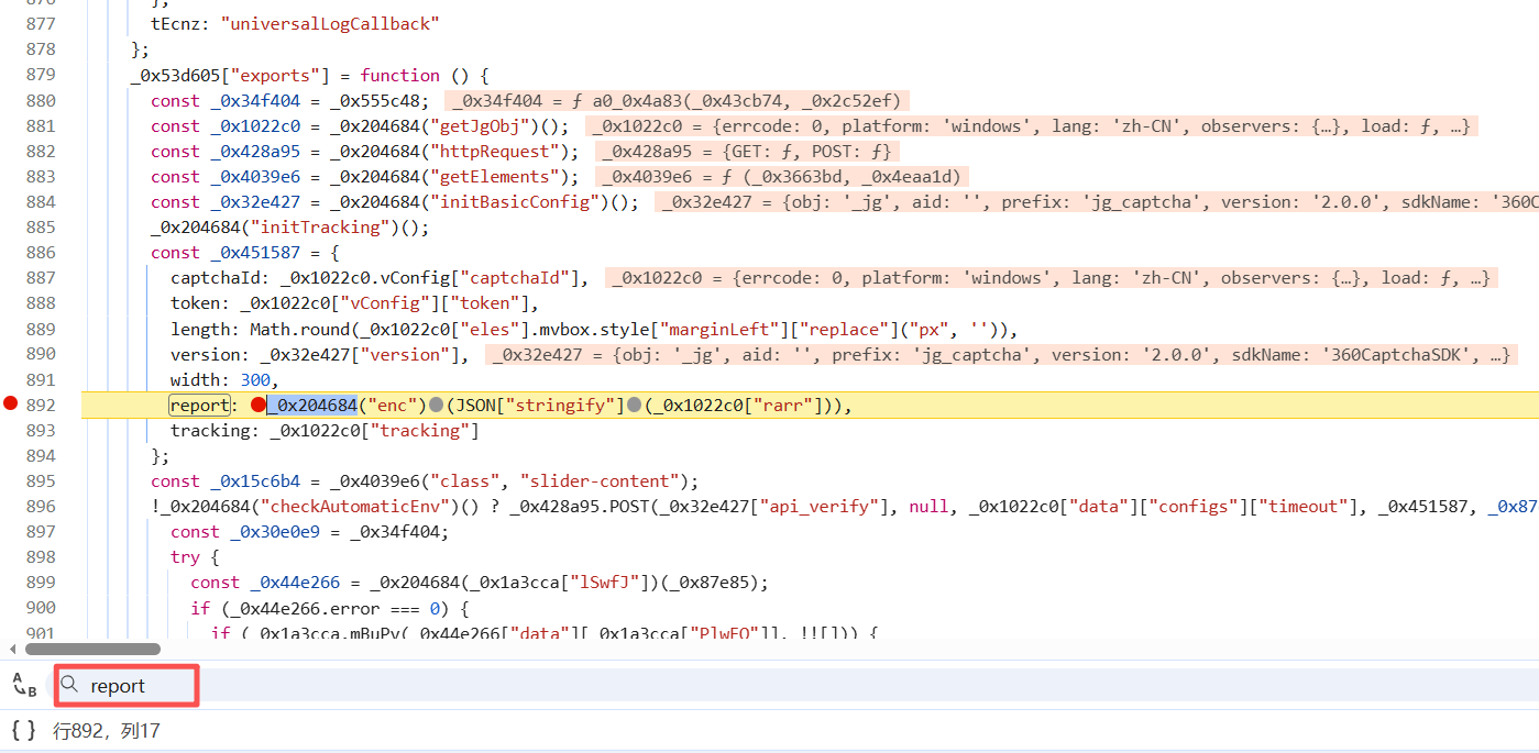 length就是滑块距离,重点分析report,report就是rarr传进enc函数返回的值