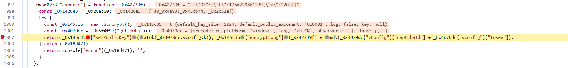 第二次而是在打开验证码jgbCaptcha.js的时候出现,可以直接删除无限debugger代码也可以去hook掉