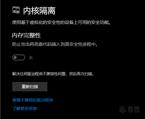 那个内存完整性是灰的应该是没开,环境: