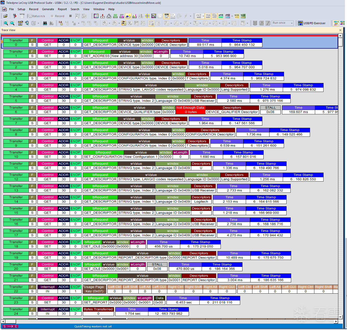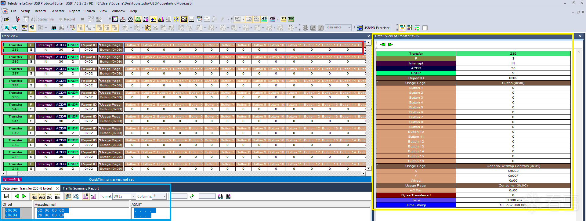 本文是<实战解析 USB HID 协议>的后续, 文中只有一个细小的新知识点, 主要是补充USB HID Mouse的HID Report Descriptor和Input Report作为例子, 供读者学习参考. 这回我换套工具, 用(昂贵的)Lecroy USB Protocol Suite捕捉/呈现USB Mouse数据(其实USB协议分析仪主要用在硬件产品设计阶段, 用于定位/分析回路或固件设计缺陷; 用来抓USB2.0 Full Speed设备的数据实属杀鸡用牛刀).