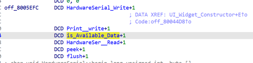 通信协议其实非常简单,根据所查资料,得知在IRQ38_handler处接收数据,主程序通过Serial2.read()(虚表中的函数,对应的是图片中的HardwareSer_Read)从64 字节的小池子中提取字节,并根据索引变量ctx[73]将其存入g_ModbusContext的缓冲区中去。至此已经了解了程序的大致运行过程,可以进行进一步的漏洞分析了。