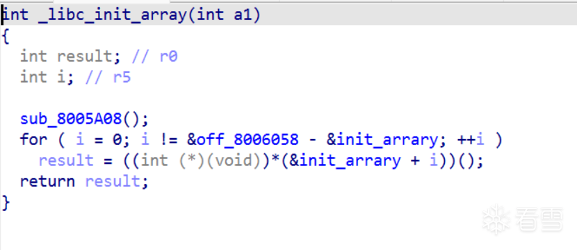 sub_8005A08无实际操作,而在__libc_init_arrary循环调用了init_arrary里边的函数,看起来像是linux加载so时,会循环调用init_arrary里边的初始话函数。进入到init_arrary数组里边去,里边有许多初始化函数,目前尚不知道作用是什么。先进入main_loop里边查看。