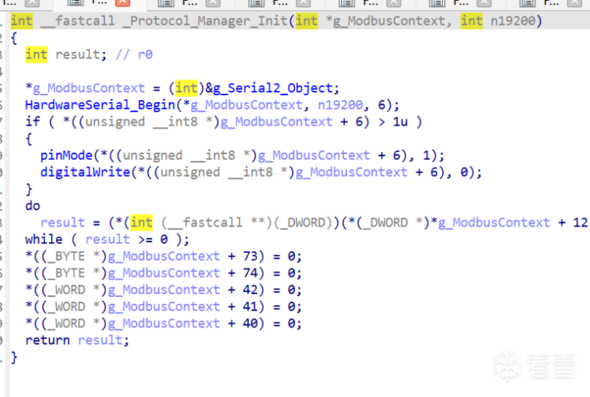 最终确定了g_Serial2_Object的对象是HardwareSerial。最终也根据AI发现该固件使用的协议栈是Modbus。