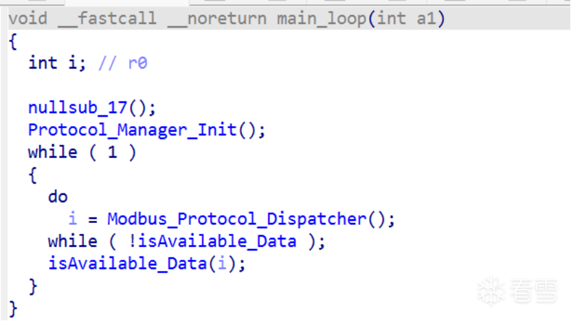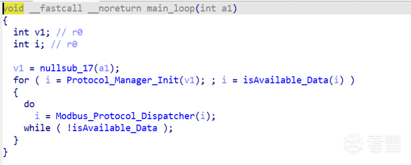 继续回到main_loop中,进入到Modbus_Protocol_Dispatcher中去,不断升入,最终发现在如下图中使用Serial2.read()获取到传输过来的数据,然后进行处理,这里应该是漏洞集合的大本营了。