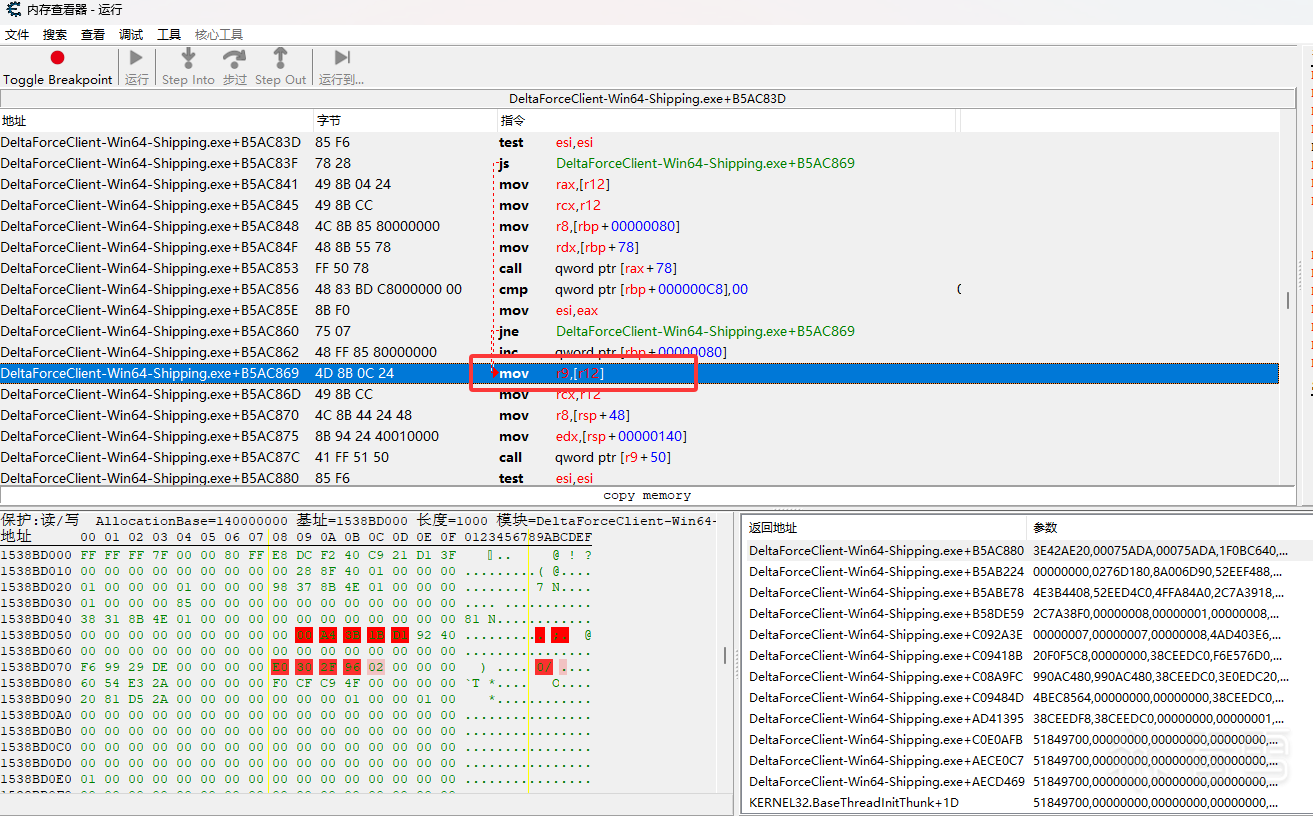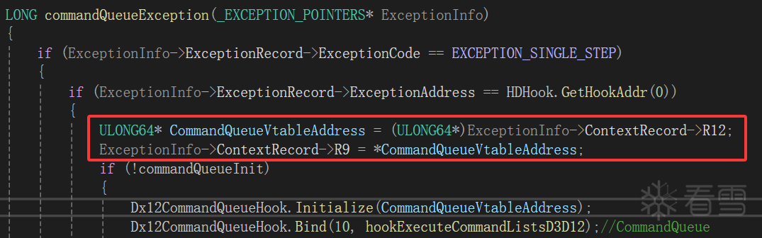 我们定位到mov r9, [r12]的位置,调用时获取r12的值,替换CommandQueue对象的虚表。