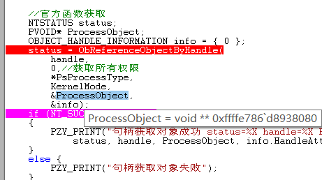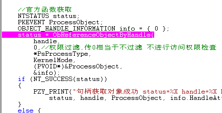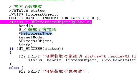 PZY_PRINT("EPROCESS=%llX GrantedAccess=%llX HandleAttributes=%llX", EPROCESS,myInfo->GrantedAccess, myInfo->HandleAttributes);